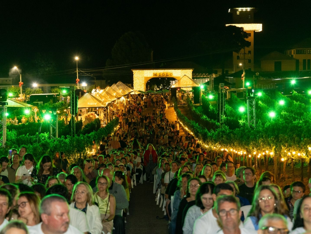 visitantes a aproveitarem as atrações artísticas e a enogastronomia regional em meio aos parreirais iluminados do Vale